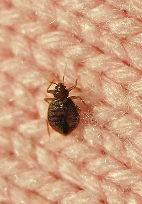 Bed-bugs are usually found in unhygienic conditions inside bedrooms as their name implies. They have a flattened appearance before a blood feed and are about five millimeters long with the look of a rather wide flea, reddish brown in color.